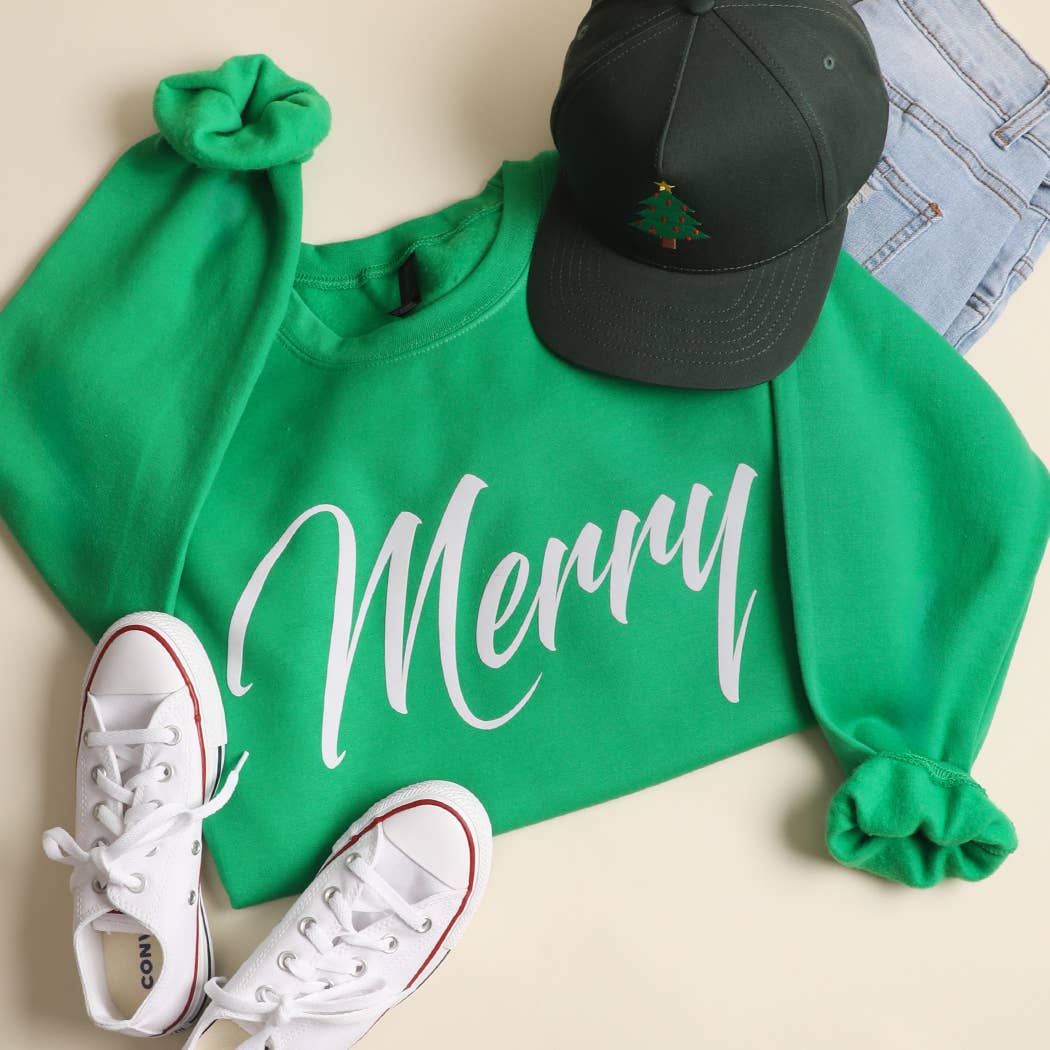 Cursive "Merry" Heavyweight Fleece Crewneck Sweatshirt