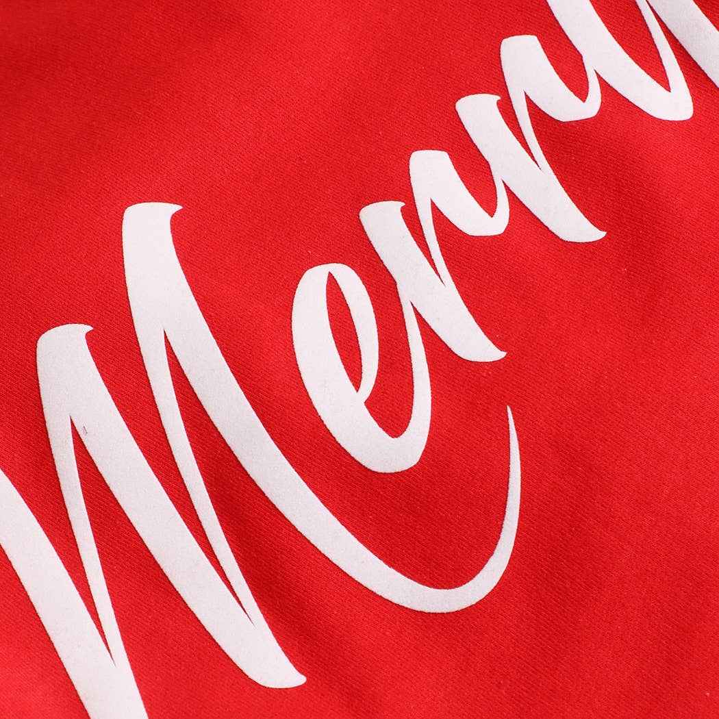 Festive and elegant, the bold cursive “Merry” logo adds cheerful holiday charm. Designed in vibrant red script across the chest, it perfectly embodies the joyful spirit of Christmas and cozy winter style. Stay cozy and stylish with our heavyweight sweatshirt, designed with warm fleece and a durable finish. Made from 50% cotton and 50% polyester, it balances softness and strength for everyday wear. Featuring a graphic soft flock logo with a suede-like texture, this piece delivers a premium look and feel. Professionally customized in the USA, it offers a relaxed unisex fit in sizes S–XL for versatile comfort